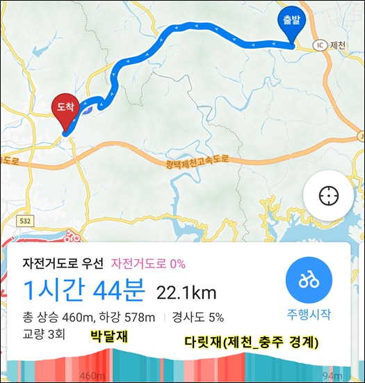 부릉이2tb로 박달재와 다릿재를 넘는 것은