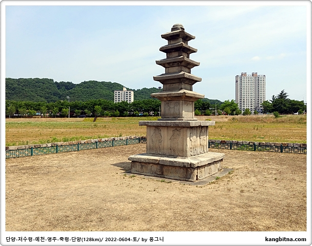 예천 읍내에 있는 개심사터 오층석탑 도착. 진입로에 아무런 안내가 없는 논 한 가운데 서 있어 찾는데 조금 헤맸다. 덕분에 예천 읍내를 걷게됨. 예천 읍내는 생각보다 작았다. 시가 아니라 딱