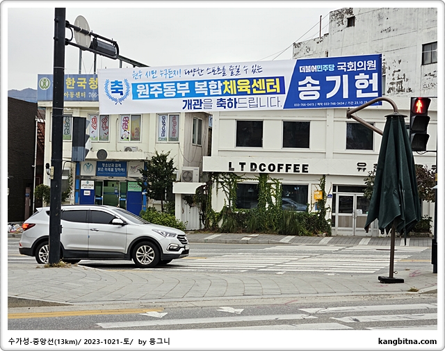 중앙선산책로-원주경찰서-원주천-혁신도시-중앙선산책로 한바퀴 돌면 13km가 된다.