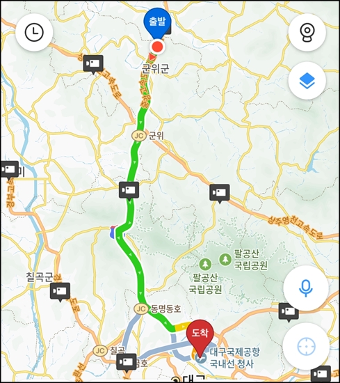 팔공산 IC 등 고속도로를 통하여 가는 것이 좋을 듯