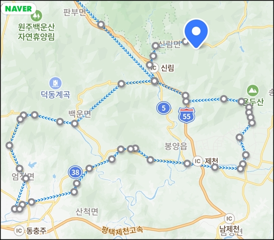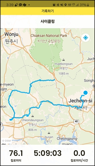 재작년에 배론성지에서 검은색 도로를 따라 부릉이로 넘었다.