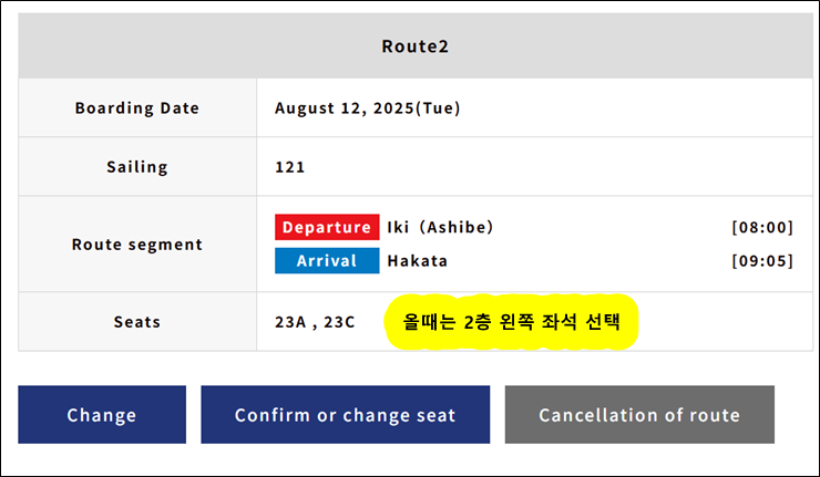 [비너스 예약(07.07)] 하카타->아시베 왕복(8.6-8.12) 당일 결제