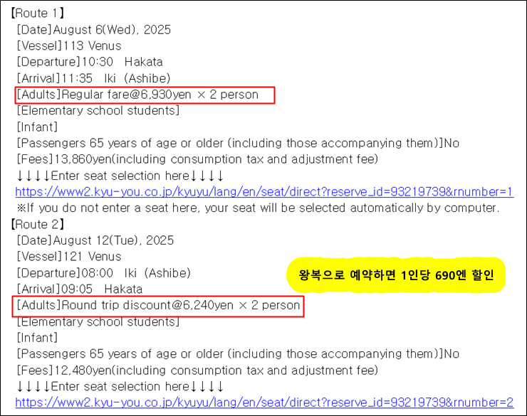 4. 왕복으로 예약하면 1인당 690엔 할인