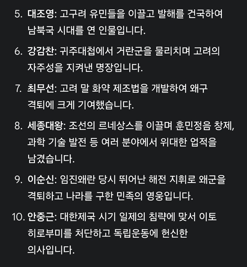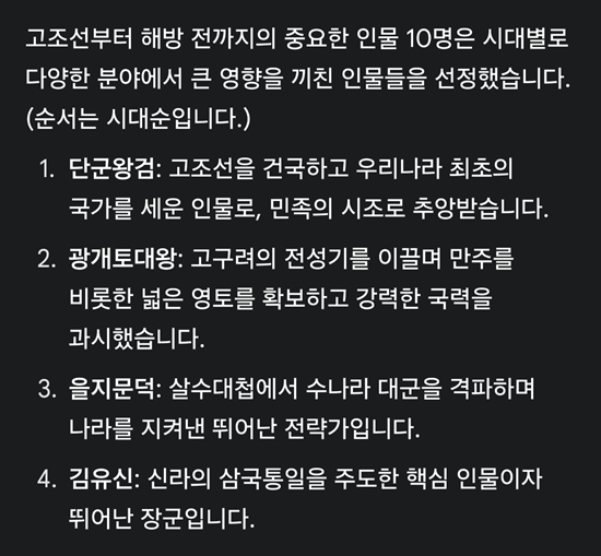 뭔지 모르겠지만 질문을 다르게 했는 지 이번에는 인물 업적 요약까지 하는데