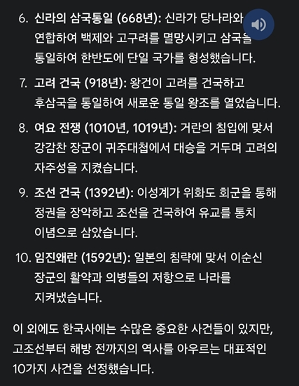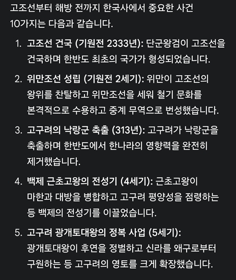 역사 사건도 물어봤다.