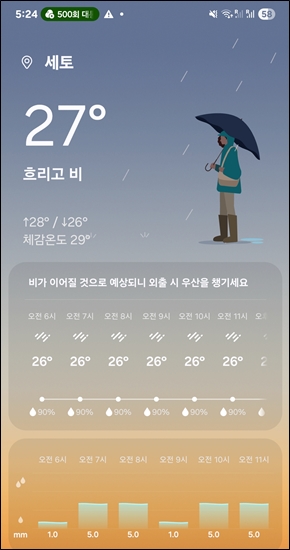 출발하자마자 비내리기 시작