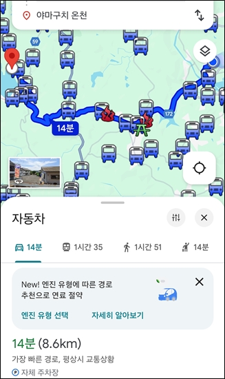 오늘의 첫번째 목적지 야마구치 온천 승용차로 가면 14분 거리다.