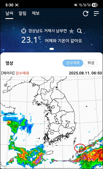 한국 기상청 검색하니 거제시의 기후가 나온다.