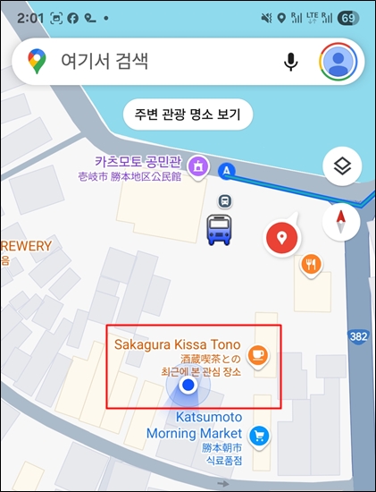 차로 2km 정도 가츠모토쪽으로 나가면 로손 편의점이 있다.