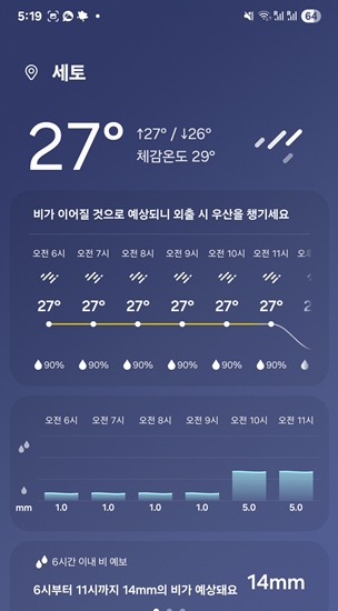 영상자료 보니 하루 종일 비가 오락가락 할 것 같다.