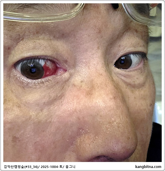 푹 쉬는데 눈에 실핏줄이 터졌다.