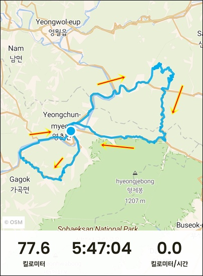 오늘 코스 100km 맞추려면 영월역에서 출발하면 된다.