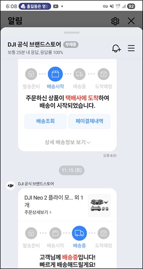 어제 주문한 DJI Neo2가 배송 중...