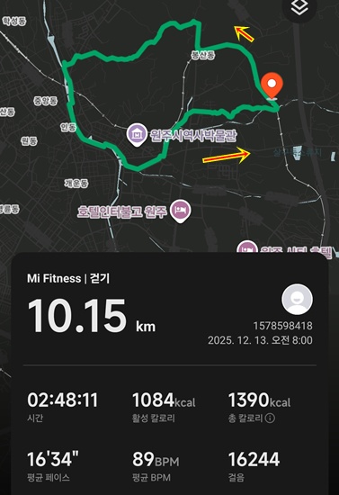 [걷기][2025-1213-토] 유교역-원주천(10.2km)