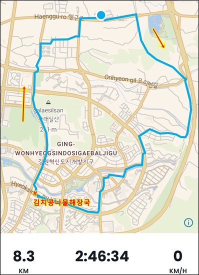 혁신도시쪽으로 10km 정도 도는 것으로 계획하고 출발