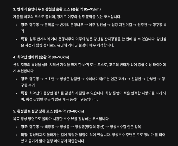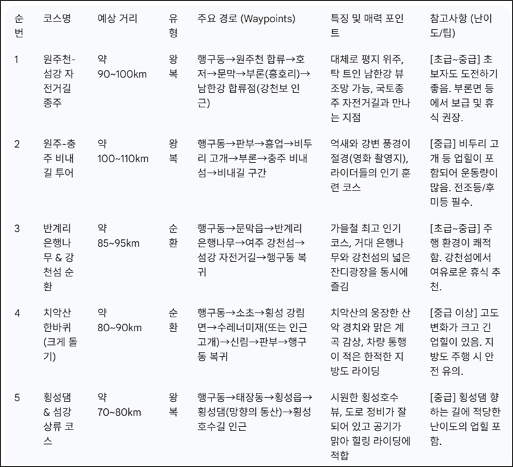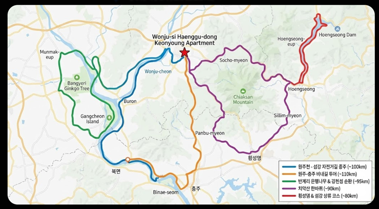 4번 코스는 이론상으론 멋지지만 차량이 많은 공도구간이 있어서 비추천...