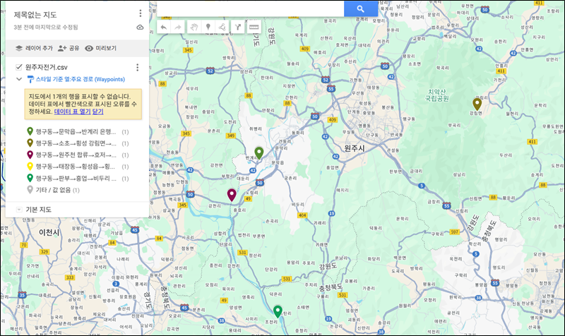 없는 지명도 나오고 횡성호의 위치도 틀리고...