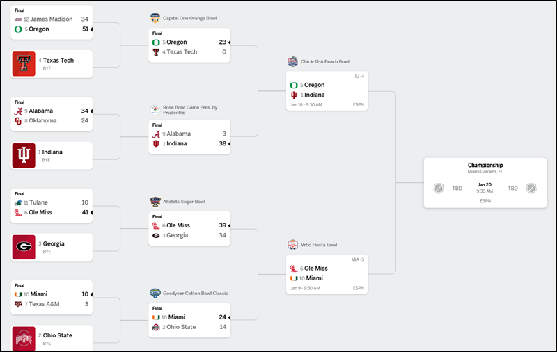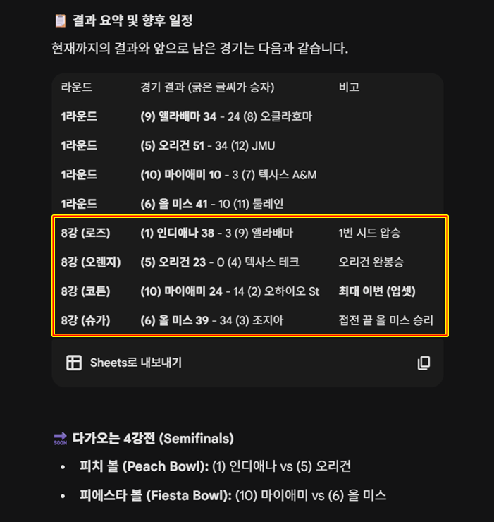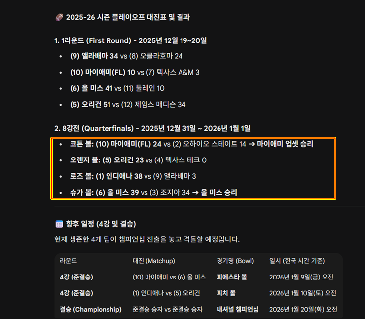 마침 오늘 NCAA 풋볼 8강 전이 있어서