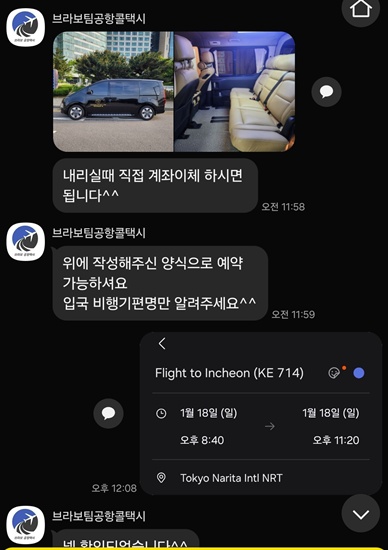 일본여행 출국, 입국 콜밴 예약 완료