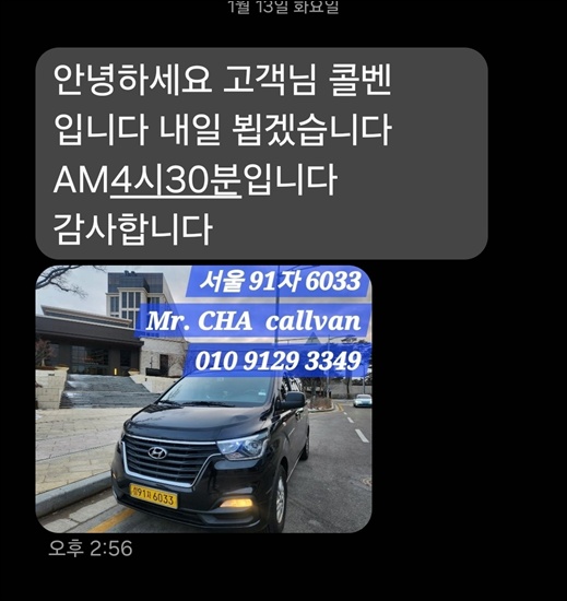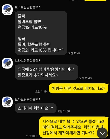 일단 카톡으로 콜밴 예약완료