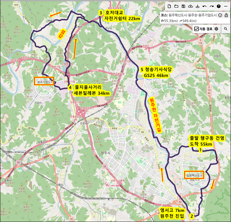 원주천에서 섬강으로 넘어갈 때 조금 더 안전하게 다닐 수 있을 것 같다.