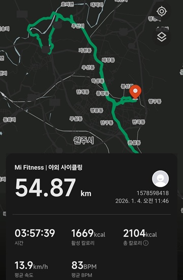 [아크틱][2026-0104-일] 날으는 자전거 한강라면(55km)