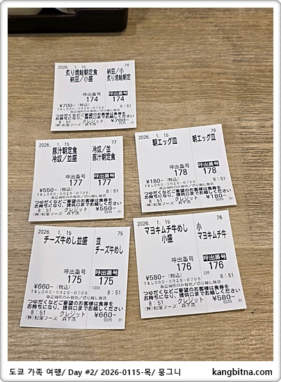 아침식사는 마츠야에서 각자 주문