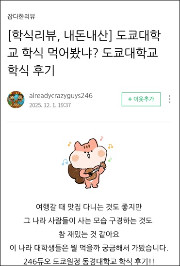 블로그 후기들을 찾아보면 도쿄대 학식 라멘이야기가 많이 나온다.