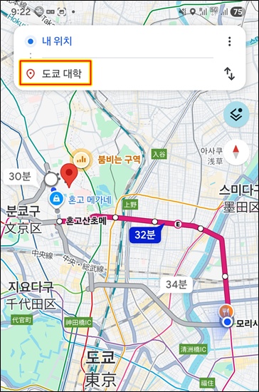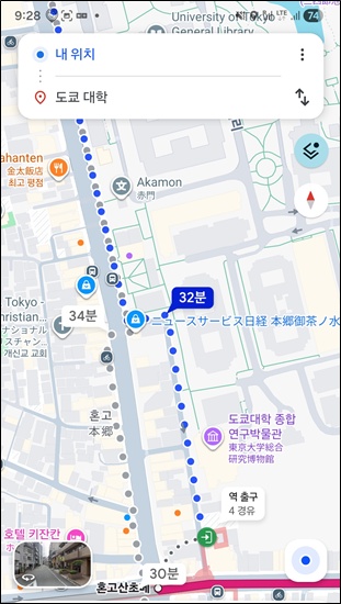 9시 조금 넘어서 지하철 타고 도쿄대학으로
