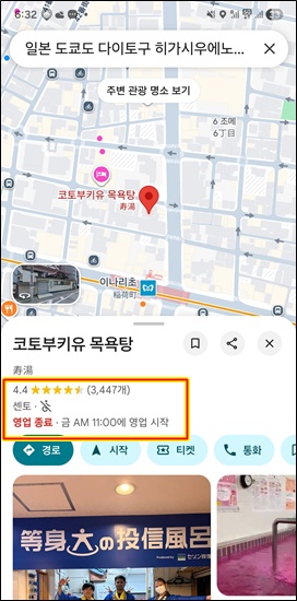 관람후 고토부키유 목욕탕 검색하니