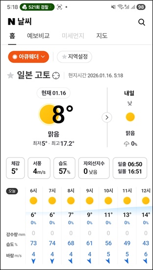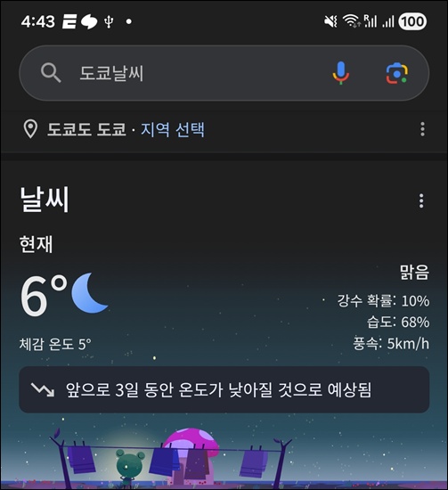 새벽에 영상 6도