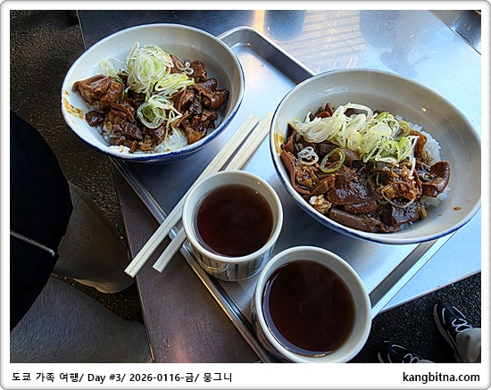 싸스네야에서 소고기덮답과 호르몬덮밥으로 아침식사