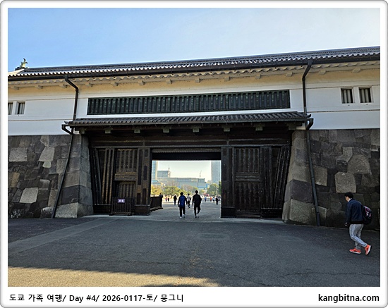 고쿄의 니주바시를 향해 걸어감