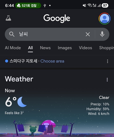 아침 6시에 영상 6도