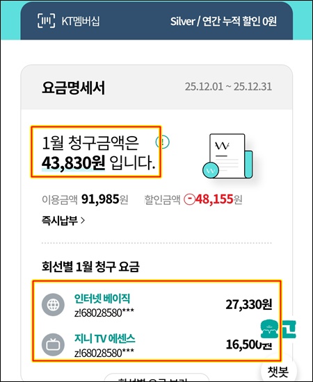 아무튼 월 43,830원을 내고 있다.