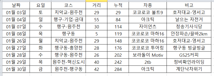 1월의 라이딩 기록